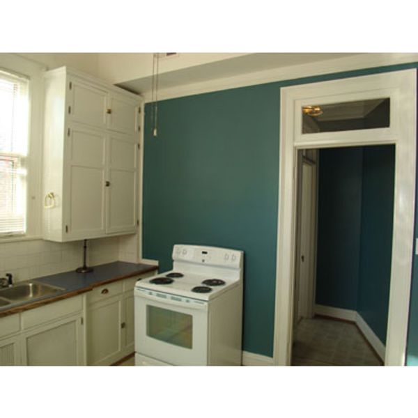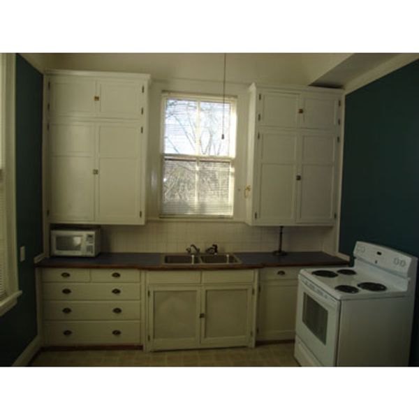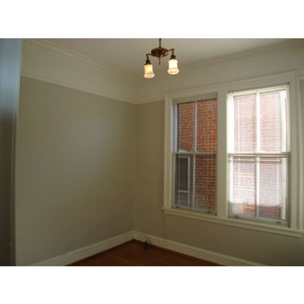 Spacious 1-bedroom apartment has it all: Historic home, off-street parking, 1000 square feet, large windows with storms, hardwood floors throughout, heat pump, large rooms, tall ceilings, and coin operated laundry facilities in building.